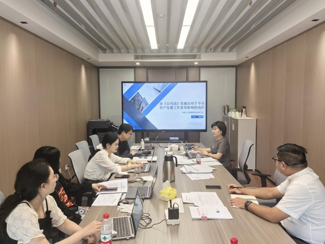 “AMC小課堂”首期課程圍繞“新《公司法》實施對不良資產處置工作的重大影響”進行解析,深入探討新法下公司治理結構變化、股東權利義務調整、清算注銷規則更新等對債權追索、資產處置路徑帶來的深刻變革與應對策略。公司全體人員參加本次課程培訓。